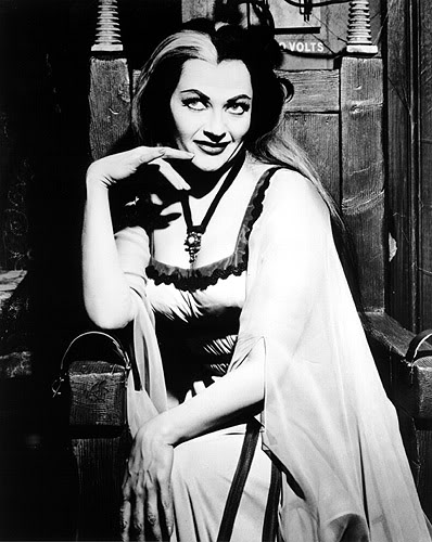 Last is Lily Munster (played by Yvonne de Carlo). The Countess of Shroudshire (daughter of Dracula), she is the matriarch of the Munster household, from the CBS sitcom The Munsters. Lily is a vampire but is also the voice of reason. And she had killer hair.