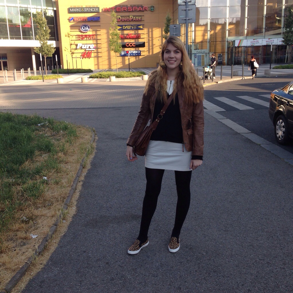 So what was I wearing? Besides the evil (yet incredibly cute) Asos leopard print plimsolls, I wore a Mango jersey dress with zipper detail on the top front, Stradivarius saddle bag (a favorite), Pull & Bear sweater (it has been a bit chilly the past few days, ironic considering it’s finally summer). Topshop earrings (so old!) and Stradivarius real leather jacket.