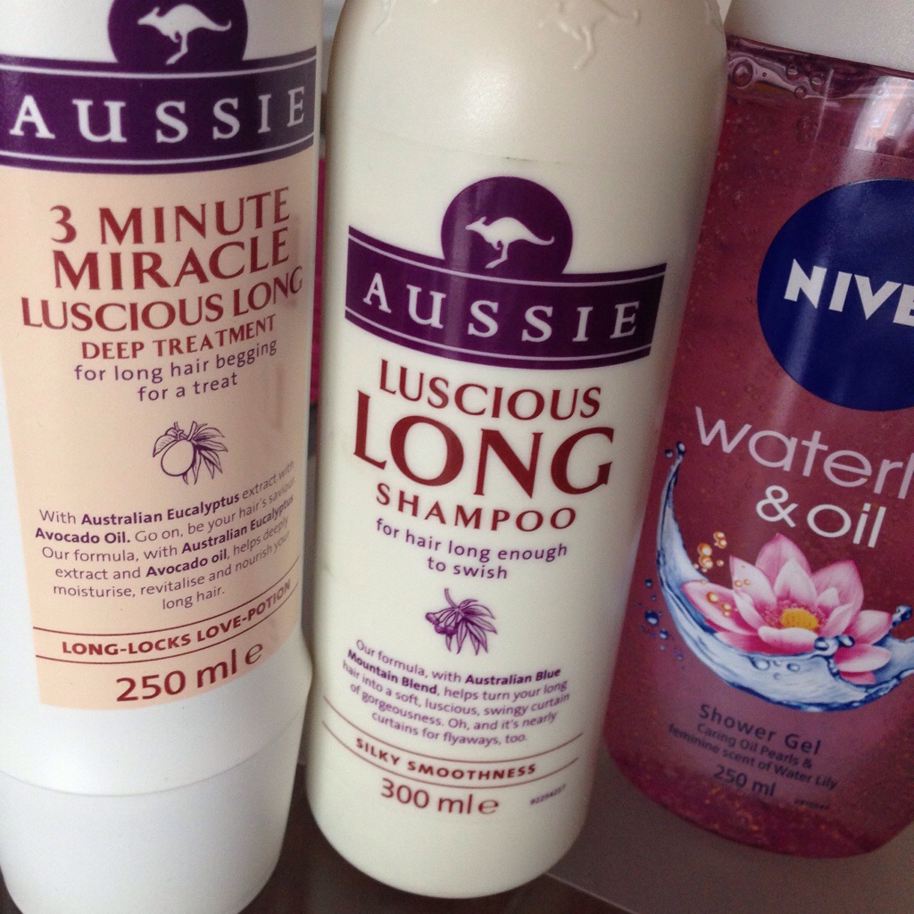 I bought this weekend set at Sephora, I used the smallest container for my make-up foundation, the two bigger ones for shampoo and conditioner (Aussie – my favorite hair products brand). Then some hair balm in the mini spray container. As for shower gel I decided to just take it as it is.