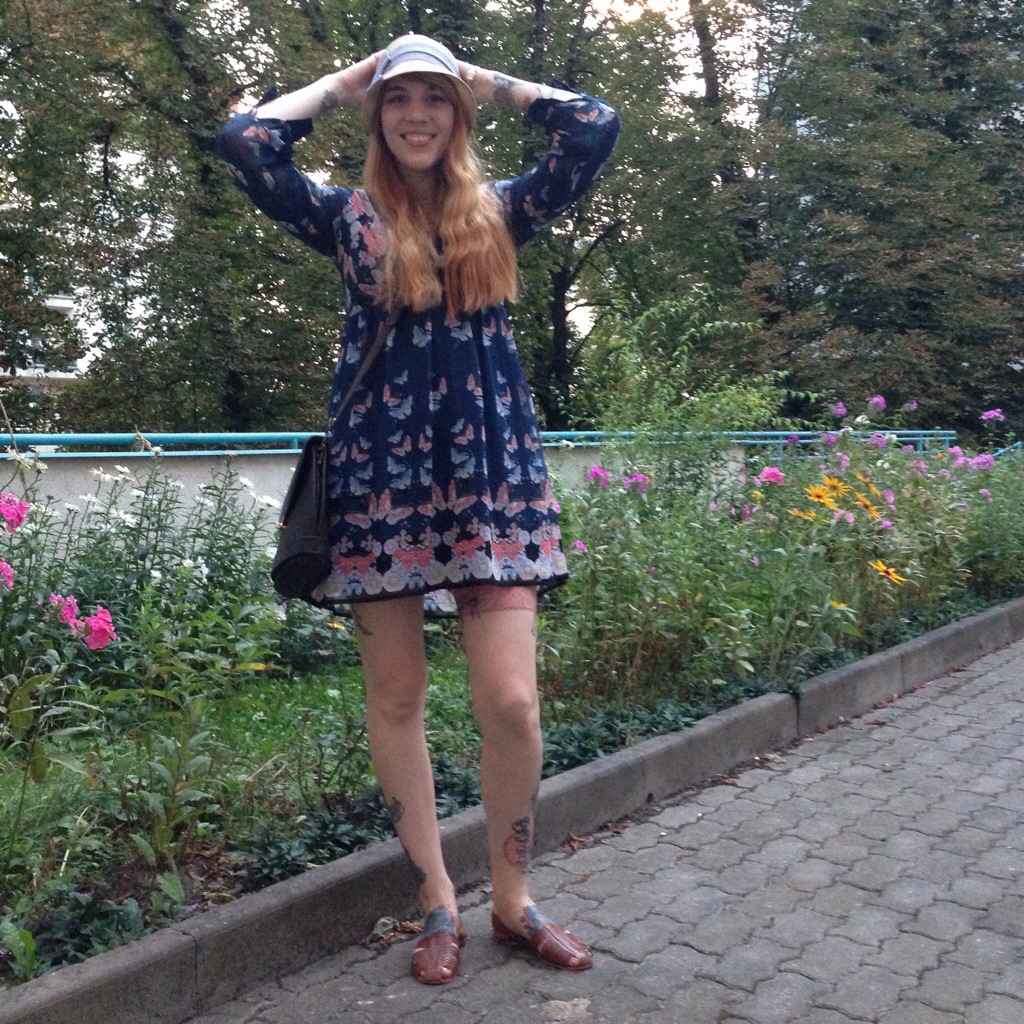 Outfit details: Marks’n’Spenser hat, thrifted Asos dress, Asos leather sandals, vintage bag.