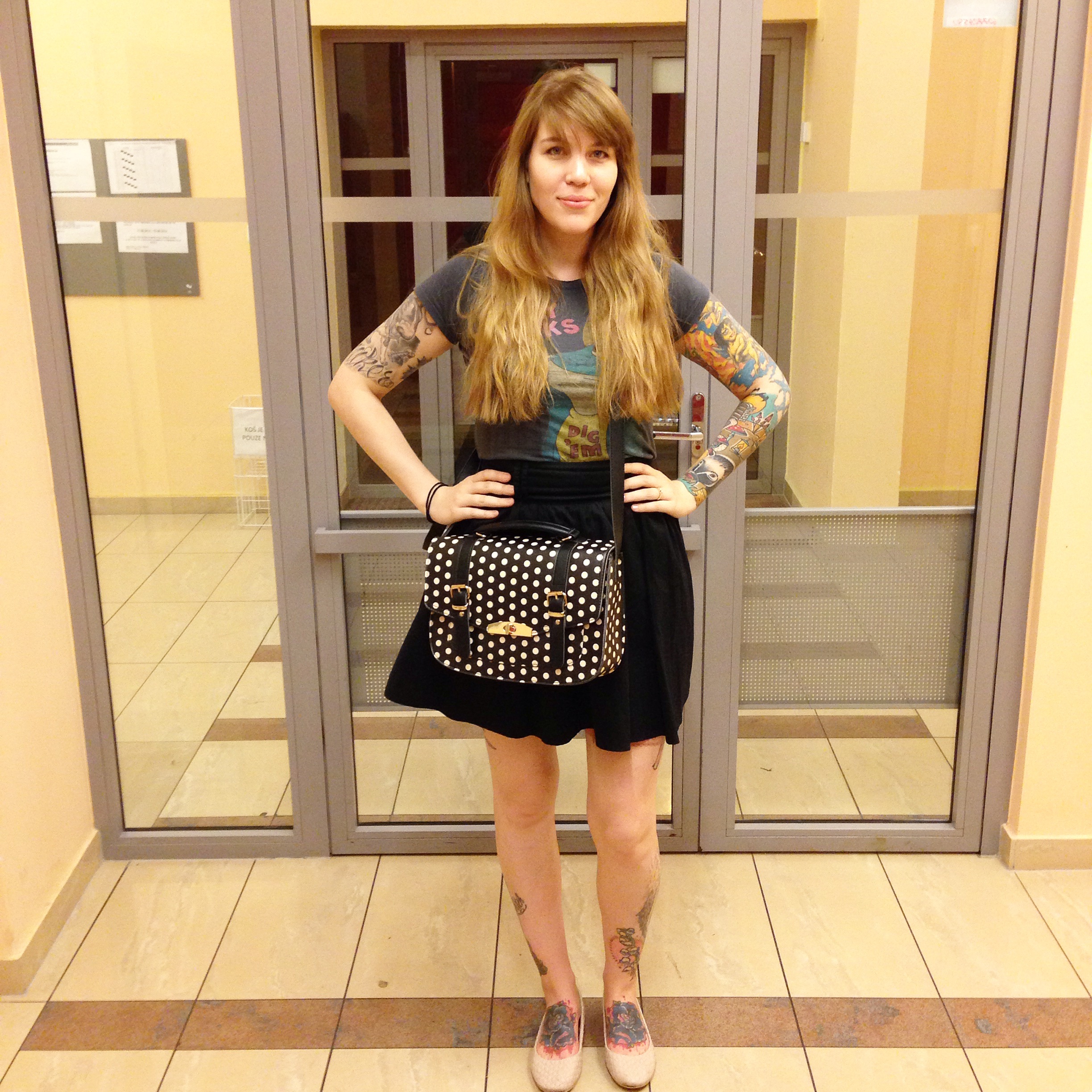 IMG_3057Although I really like this bag, the fact that the polka dots are more beige than white actually make it rather hard to style, so that made me all the happier when I found these flats in my collection (which I bought in 2010) and realized they were a perfect match. It’s great to find that you have something in your collection that you have entirely forgotten about πŸ™‚