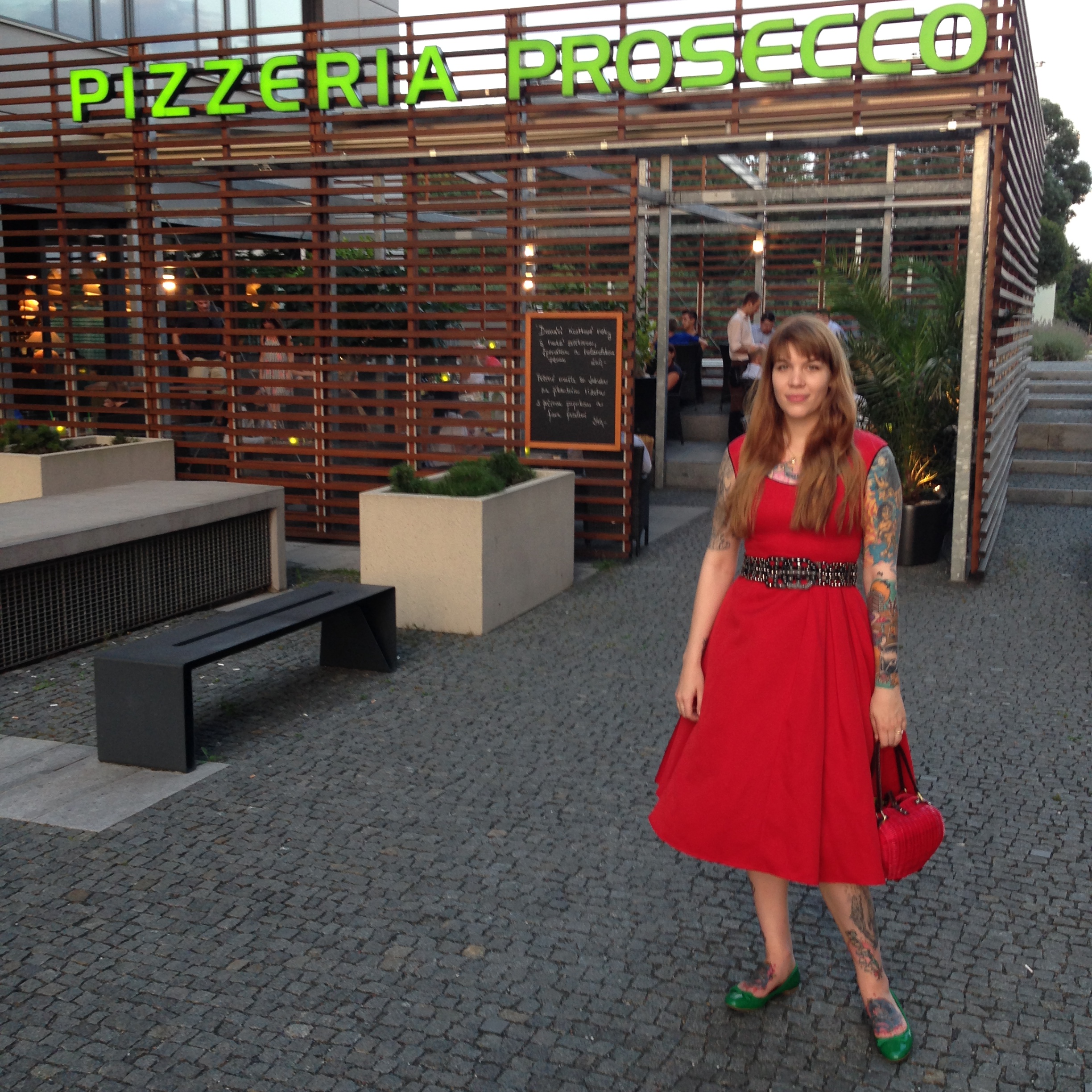 Finally outfit number 4: This was from the 21st of July, M and I went out to dinner at Prosecco. Besides my Ollie & Nic bag I wore a studded Zara belt and a pair of Zara woman ballet flats in a gorgeous green color. And my Grace 1950’s bow swing dress that I bought from Pieces of the Past and I blogged about here. (And I wore my petticoat underneath.) I must say, I was extremely disappointed with this dress when it arrived by post. The quality is nowhere to how I expected it to be. The material is definitely not as nice as I was hoping, the lining is much more visible than in the product photo but worst of all, the bow looked super cheap. In fact, the bow looked so horrible that I just decided to cut it off. I think with the adjustment of chopping off that bow and adding a nice belt the dress doesn’t look so bad, but it’s definitely one that I wish I hadn’t bought. (I guess I shouldn’t have been expecting much because I didn’t pay that much for the dress, but still… Though actually, ever since I removed the horrid bow, I think I kind of like the dress now.)