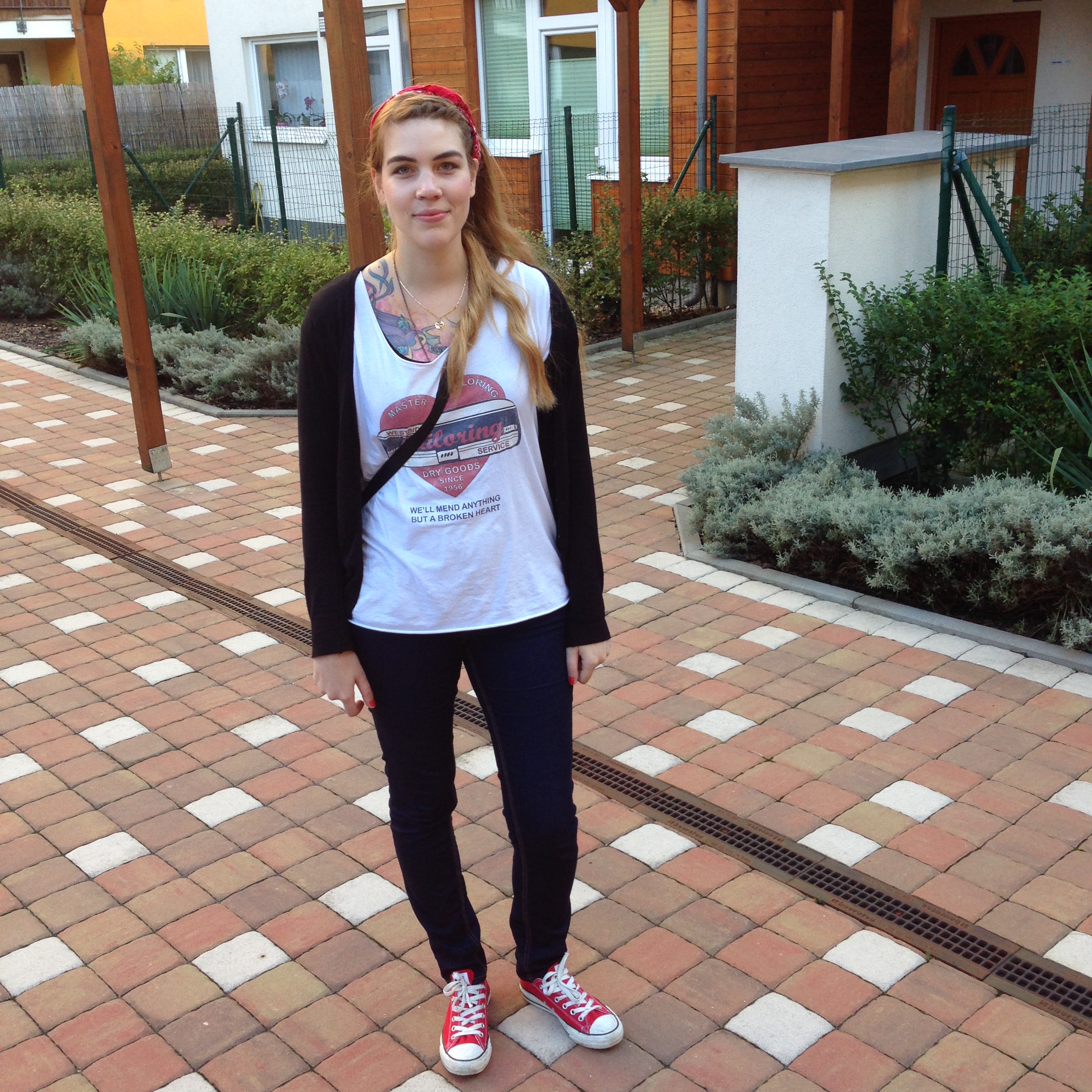 On Saturday M and I went to the annual grape harvest/ wine tasting celebration that takes place near where we live. Luckily the weather was beautiful and it was really nice just sitting at the vineyard drinking burcak (new half-fermented wine also called scrumpy). I picked my outfit for maximum comfort. I think I looked like a teenager. Definitely not my usual outfit but I quite liked it.