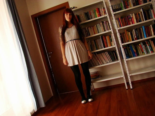 Anyways, the rest of the outfit was one of my favorite spiky headbands (Topshop), my white fake leather quilted jacket (Zara), black and white cap toe lace up flats (River Island). I spent ages looking for a product photo of my shoes but sadly came up empty. But at least I found some other outfit photos where I am wearing the shoes… the first one is from October, 2013 and the second is April the same year (when we went to the botanic garden with friends).
