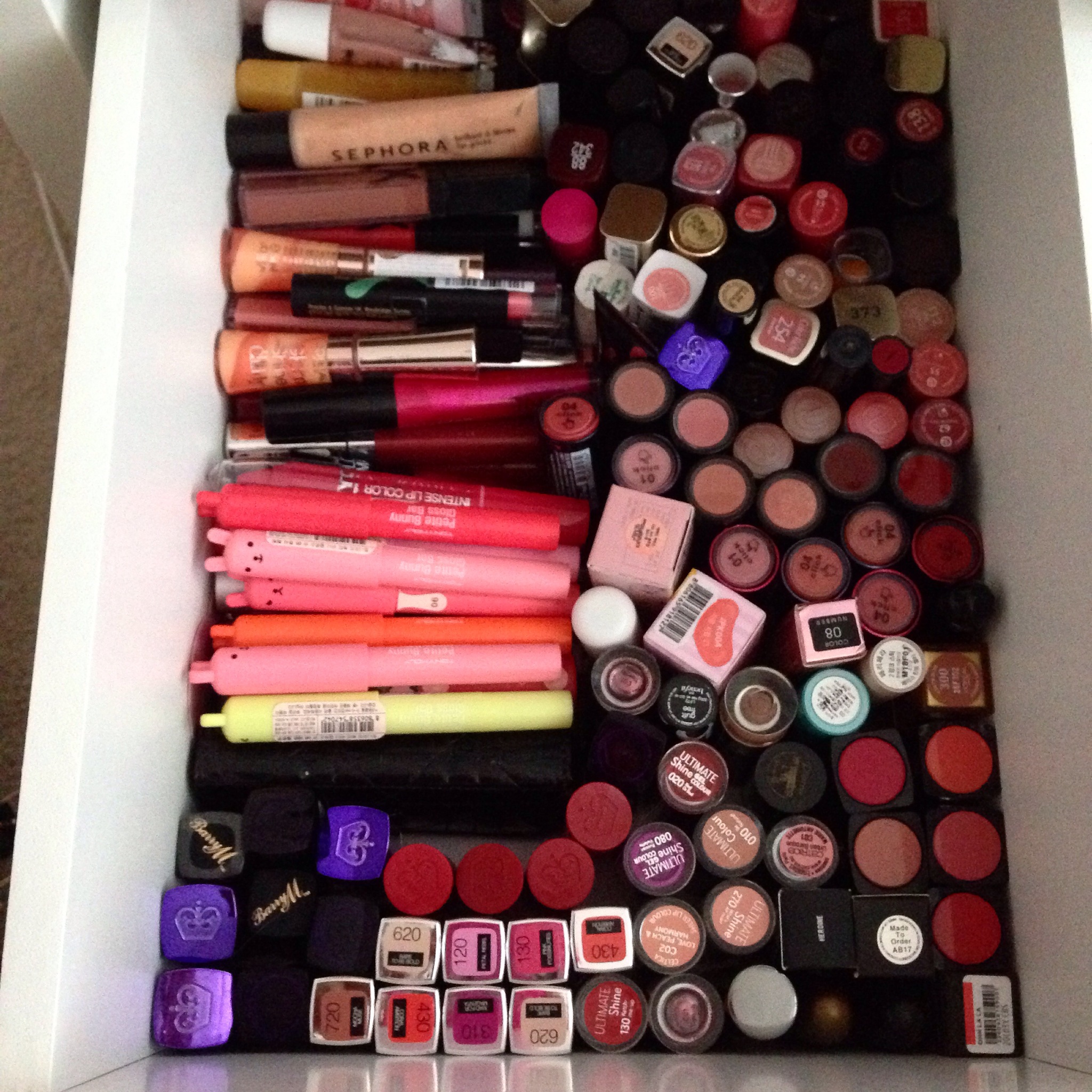 I wore it out Friday night (there was eating and drinking involved too) and it lasted all night until we got home and I removed it. Ah-mazing. Like so good I want to buy up all the colors and not wear anything else. Considering my lipstick collection (pictured below) that’s not gonna happen, but I definitely WILL be buying more lip Lush products in the near future.