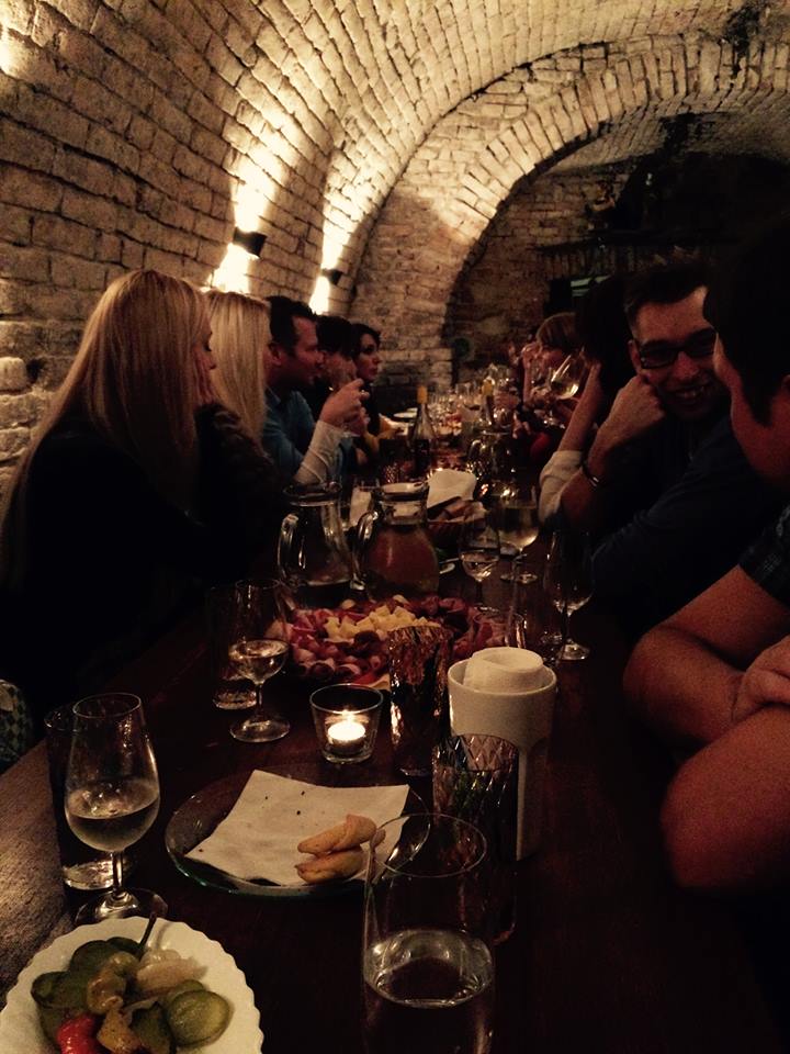 After the goulash fest we went back to our room and I read for a bit and slept for like five minutes (we didn’t have that much time) and then we headed to the wine cellar (we got to the cellar a little before six). There we had seven wine tastings and then we went to a different part of the cellar where we could sit and eat and drink. It was a really nice place and a great evening.