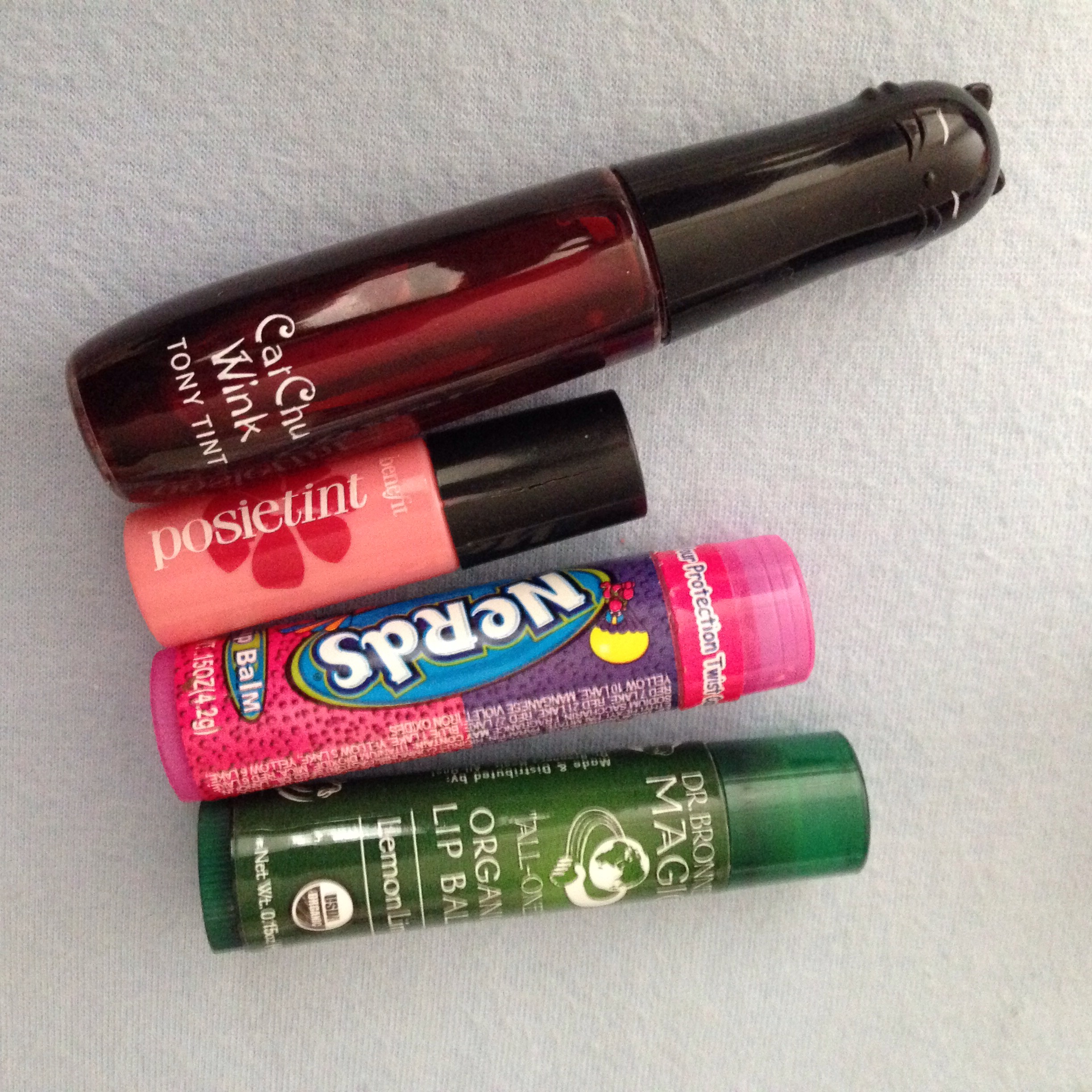 I love using Benefit lip/cheek stains but I also really like the Rimmel lip markers (couldn’t find mine in my stash, so it’s not pictured in the photo.) Basically you can then use any lip balm, I either use clear balm or a slightly very lightly tinted one. Sometime I use a lip chubby stick but really the lip stain with lip balm method is the best thing for me.
