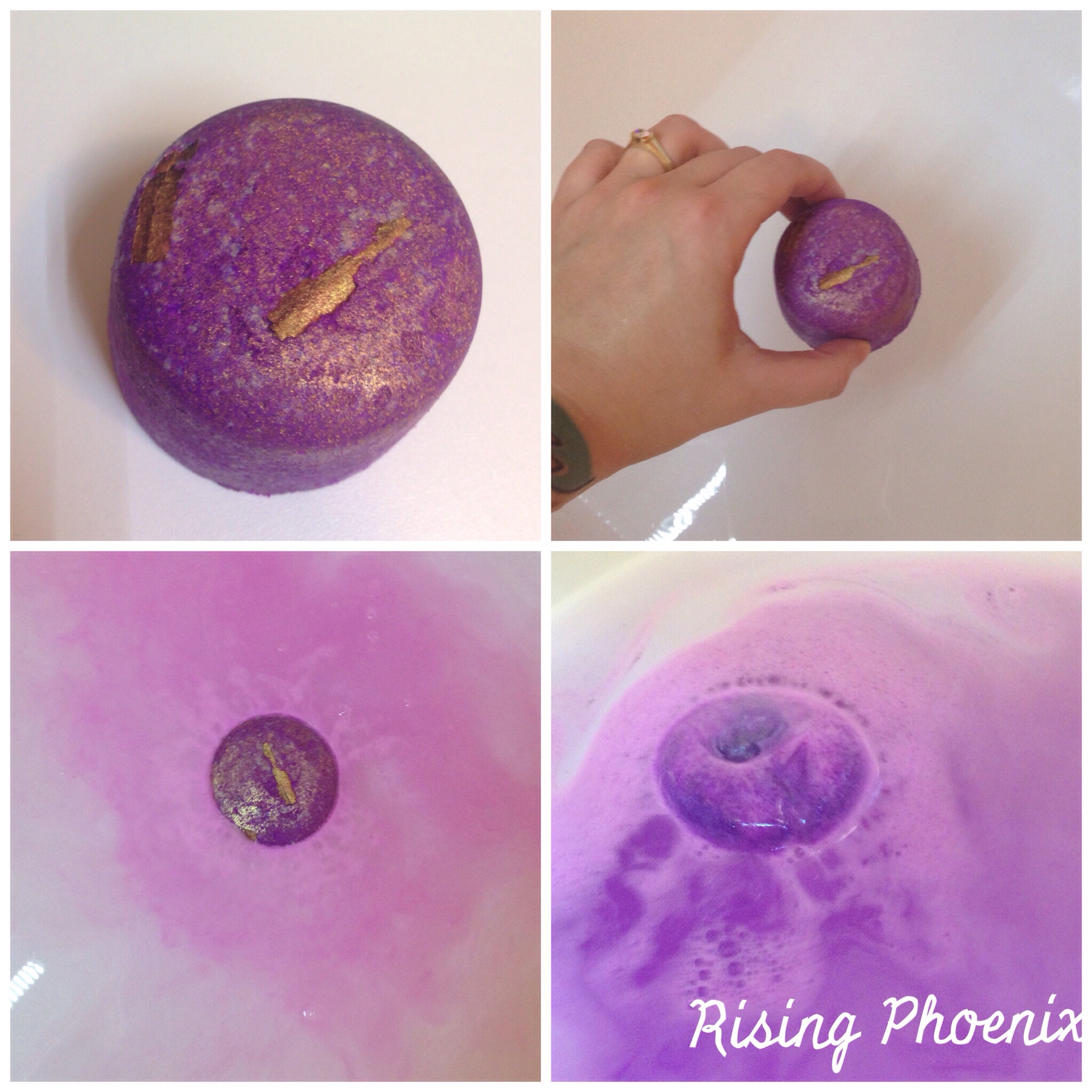 Finally, something from their regular selection, I recently tried out two bath bombs. (Oh, before I forget, I also tried out two items from the Valentine’s day range: Unicorn Horn and the Love Locket. I liked the unicorn bubble bar but was a bit dissapointed with the Love Locket.) The first was the Phoenix Rising bath bomb.