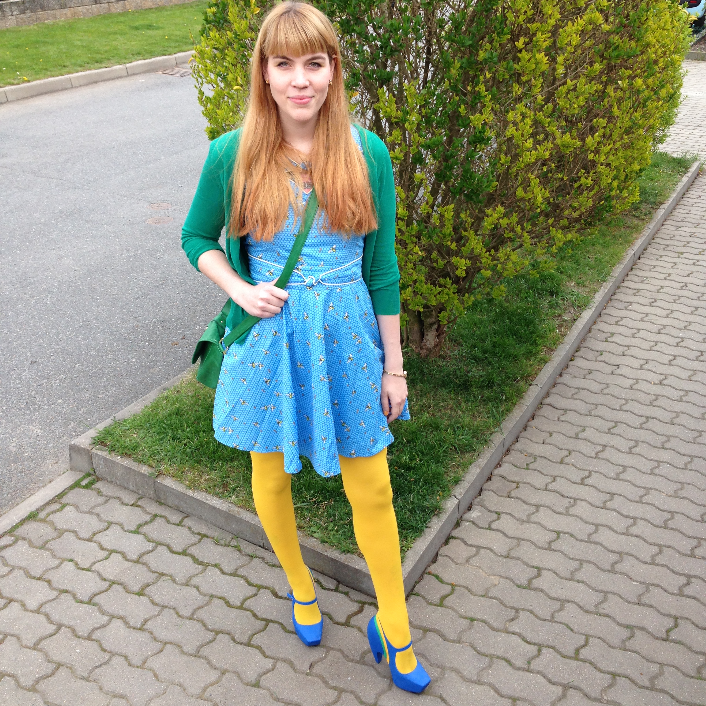 I wore them the weekend before last to a family dinner. I wore this bee print dress from Trollied Dolly and