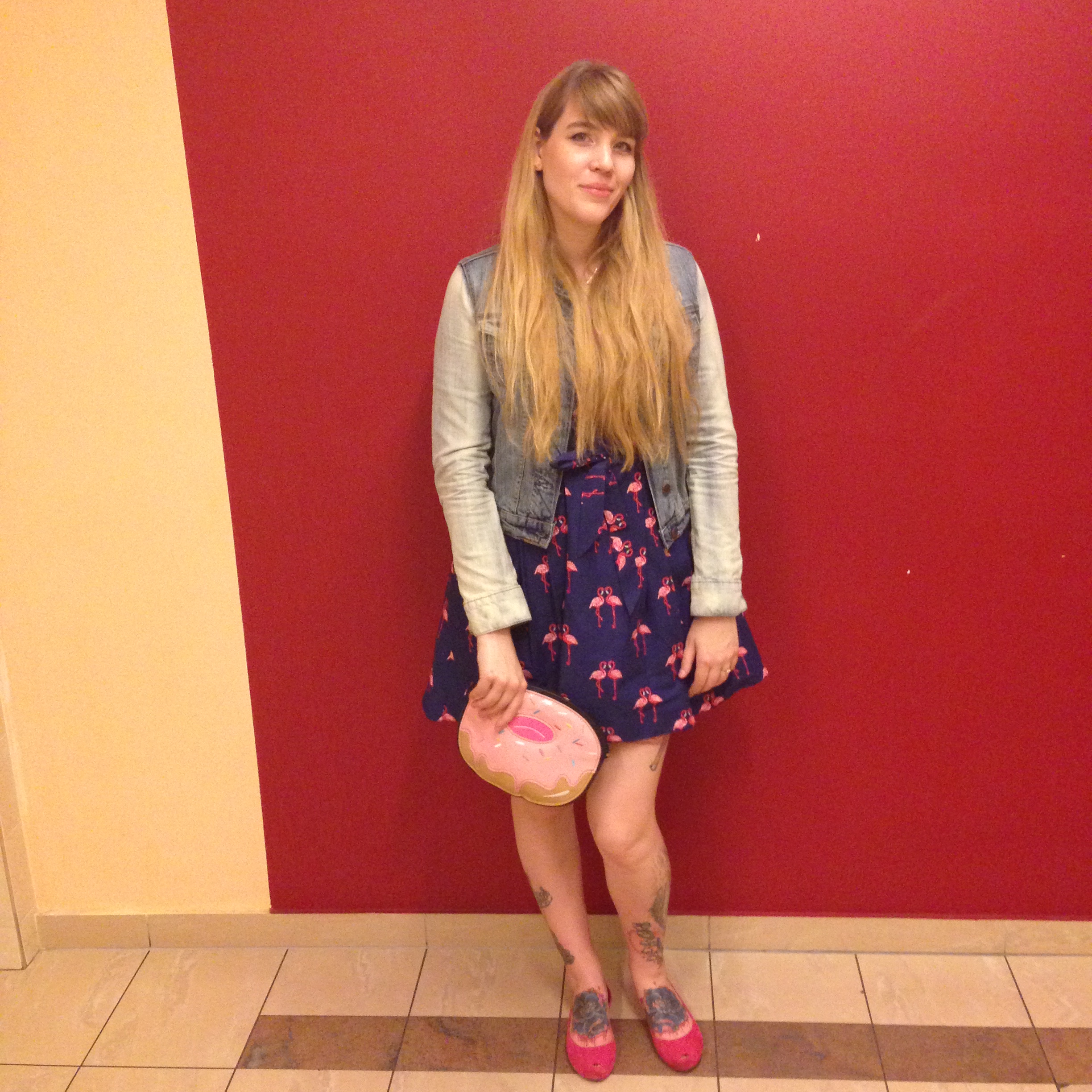 tattoed ladyI wore my pink ultragirl Melissa shoes. I know I recently mentioned that red shoes are my favorites, I love red shoes, but pink shoes and green shoes are also favorites. I wore my New Look Doughnut bag again and my Aeropostal denim jacket.