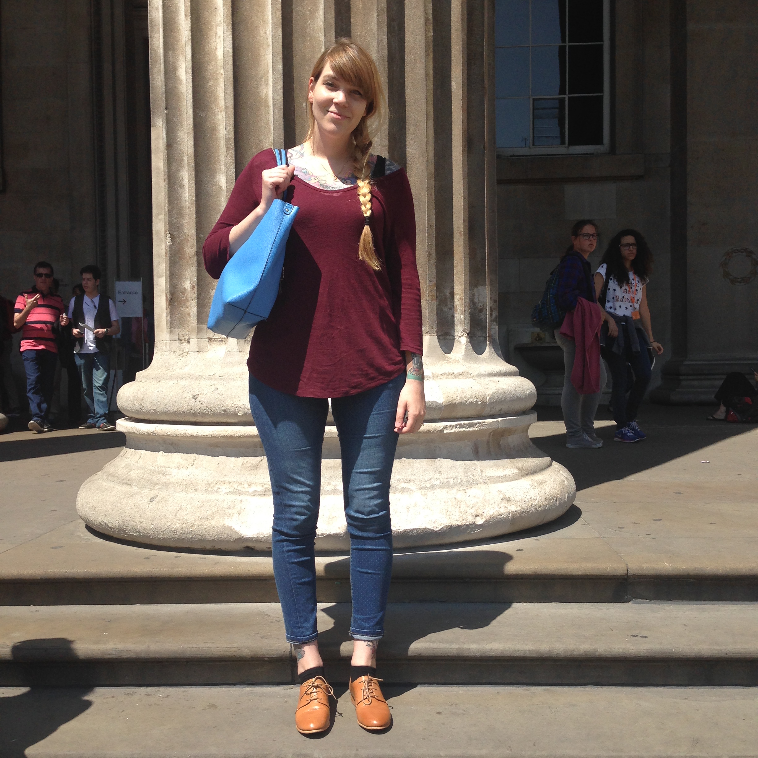 IMG_8244This was the outfit I wore to the museum: Zara skinny jeans (they’re not supposed to be cropped but I’m tall), Zara tee, H&M tank top, Aldo bag and new Dune oxfords. We then headed back to the hotel to pick up our luggage and I changed shoes, I wore my new Doc Martens shoes but then ended up changing into my Toms, I love those shoes! We took the train to Gatwick airport and then waited a super long queue because our luggage was over the weight limit (so annoying!) and then our flight took us to Prague. I’m always so glad to be home after my vacation, especially if everything is okay and we are fine and our luggage has made it safely back to us. Life is good. My birthday was the next day, on Friday, and we had a lovely dinner, which I’ll post about in my next post. So see you then!