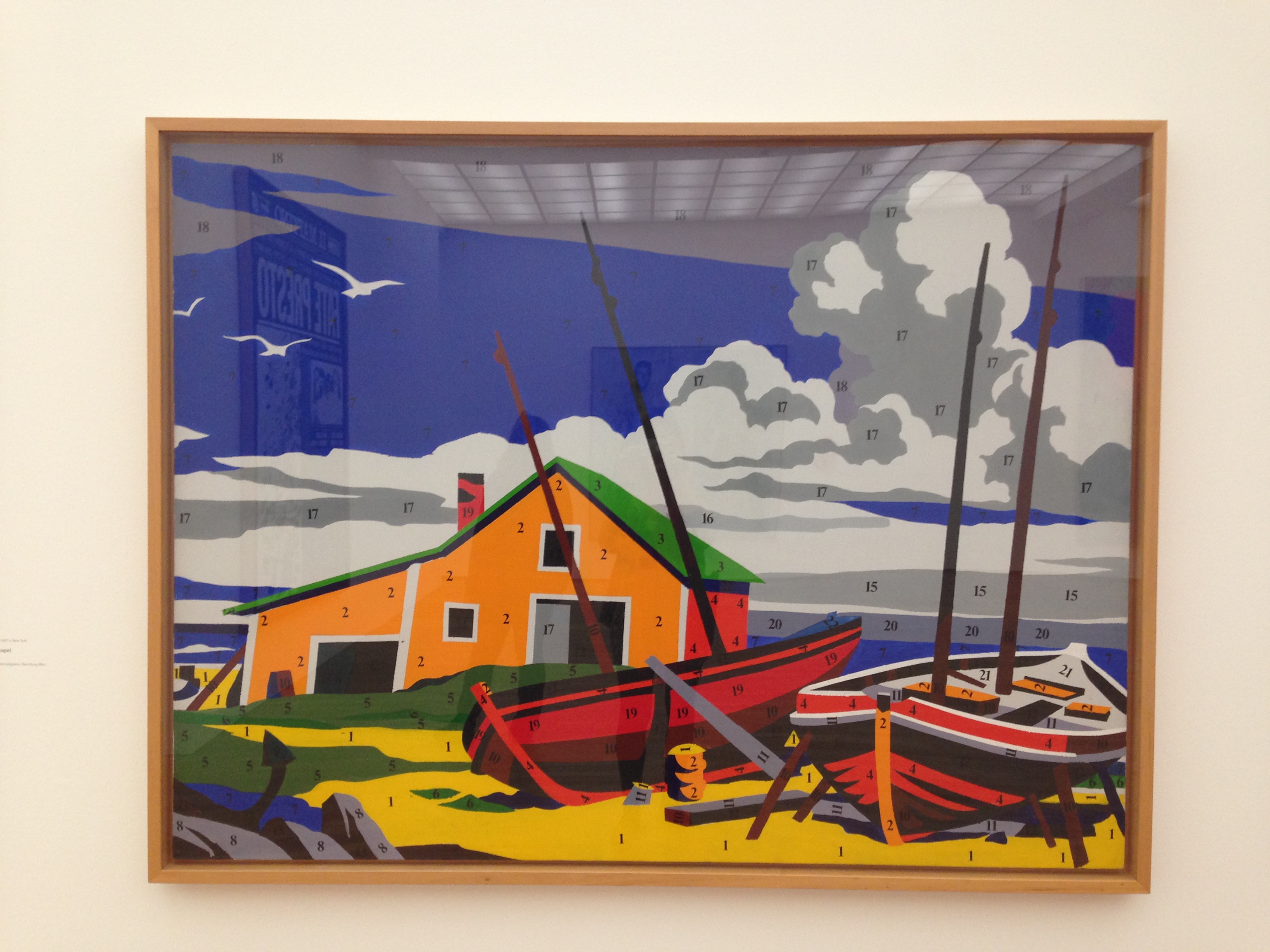 Anyways, we headed back to our hotel (I had wanted to stay at the hotel and rest since I was fairly tired but M made me go with him to this horrid place so I complained the whole way back to the hotel. Hey, he deserved it.) Below you can see one of the only paintings that I liked (from Andy Warhol Do It Yourself.) Then we went to a German pub for dinner, the best part of that was the beer really. Being a vegetarian there weren’t many things I could eat in a German pub (I had a veggie schnitzel with a potato salad.)