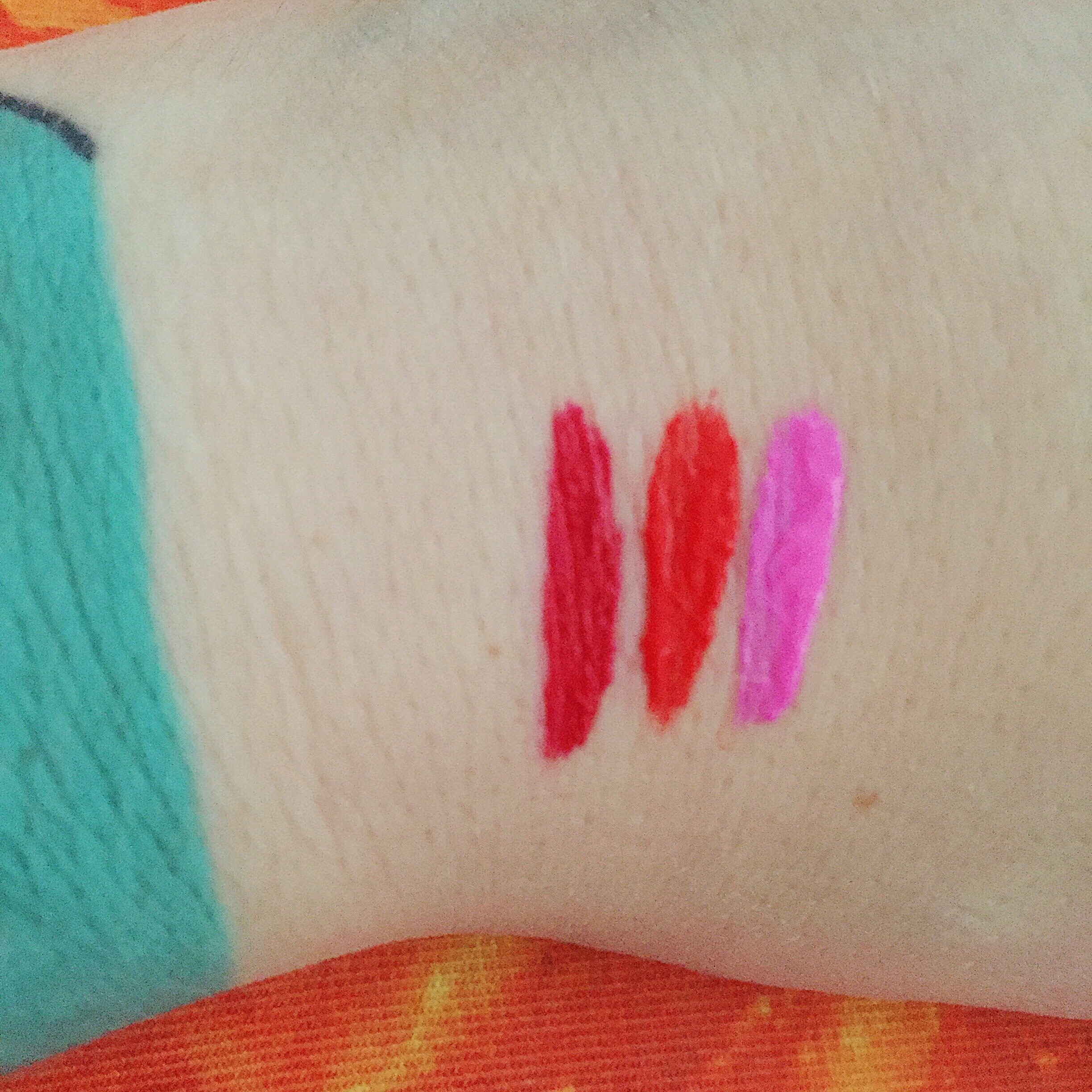 My last two lip tints are The Kiss (Valentine’s 2015) and Strawberry Bombshell. The Kiss is almost sheer with just a little sparkle (and didn’t show on my swatch photo), while Strawberry Bombshell is a lovely pink.