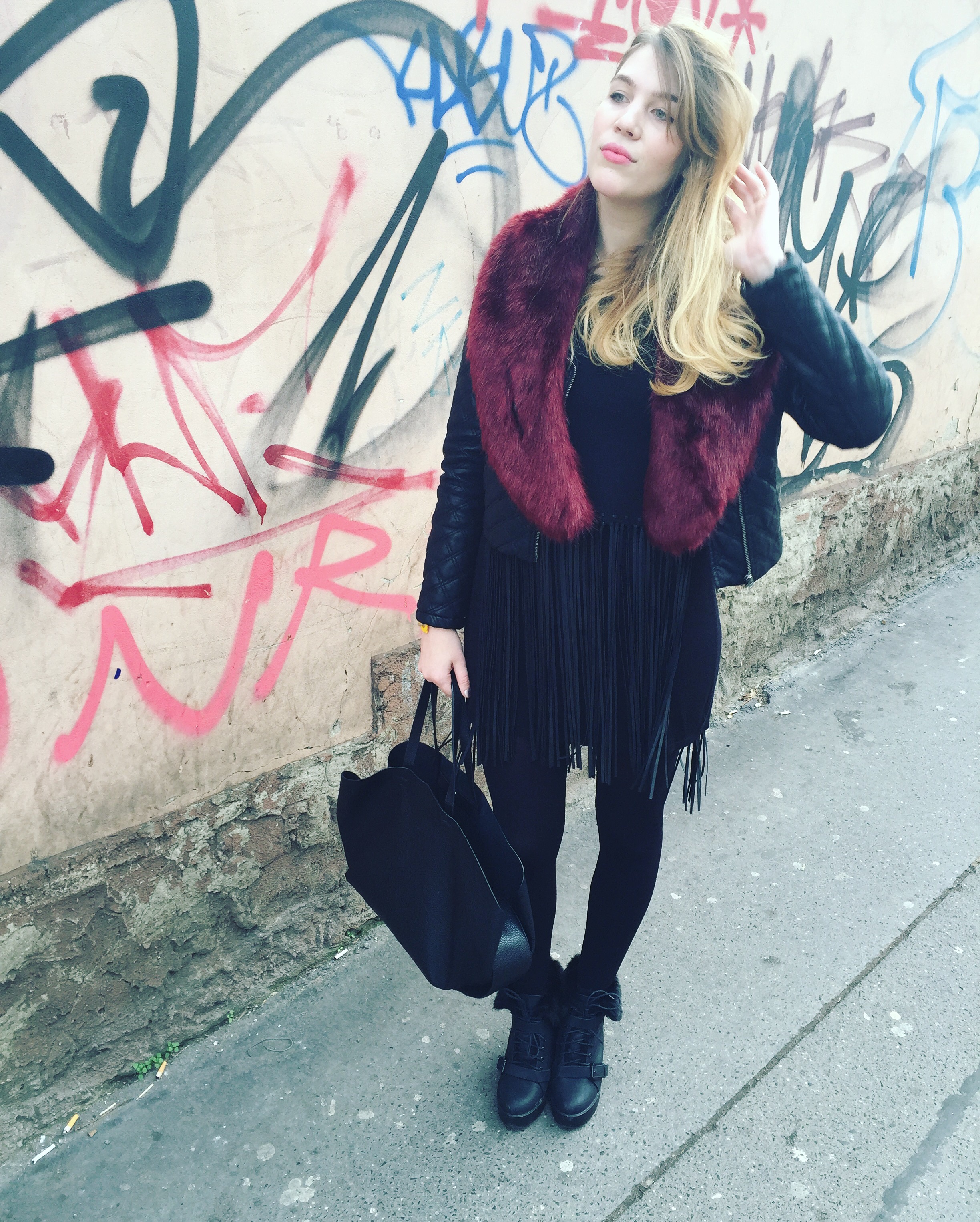 This is an outfit I wore this weekend, on Sunday for a family lunch at M’s parents’ flat and then out shopping. I haven’t been out shopping in what felt like FOREVER so I really had fun – I bought some necessities (a bra set and boy short undies; new yoga pants to help motive me into going to the gym more often than just once a week, also two new gym tops as I normally exercise in the most hideous tops imaginable and that certainly doesn’t help the situation), a huge shopper bag for the beach from O’neill, a new swimsuit and a super cute fake leather biker jacket from H&M. So the biker jacket is obviously my favorite purchase and y’all know that I don’t need ANOTHER black (fake) leather jacket to add to my collection, but when I saw it I just knew it had to by mine.