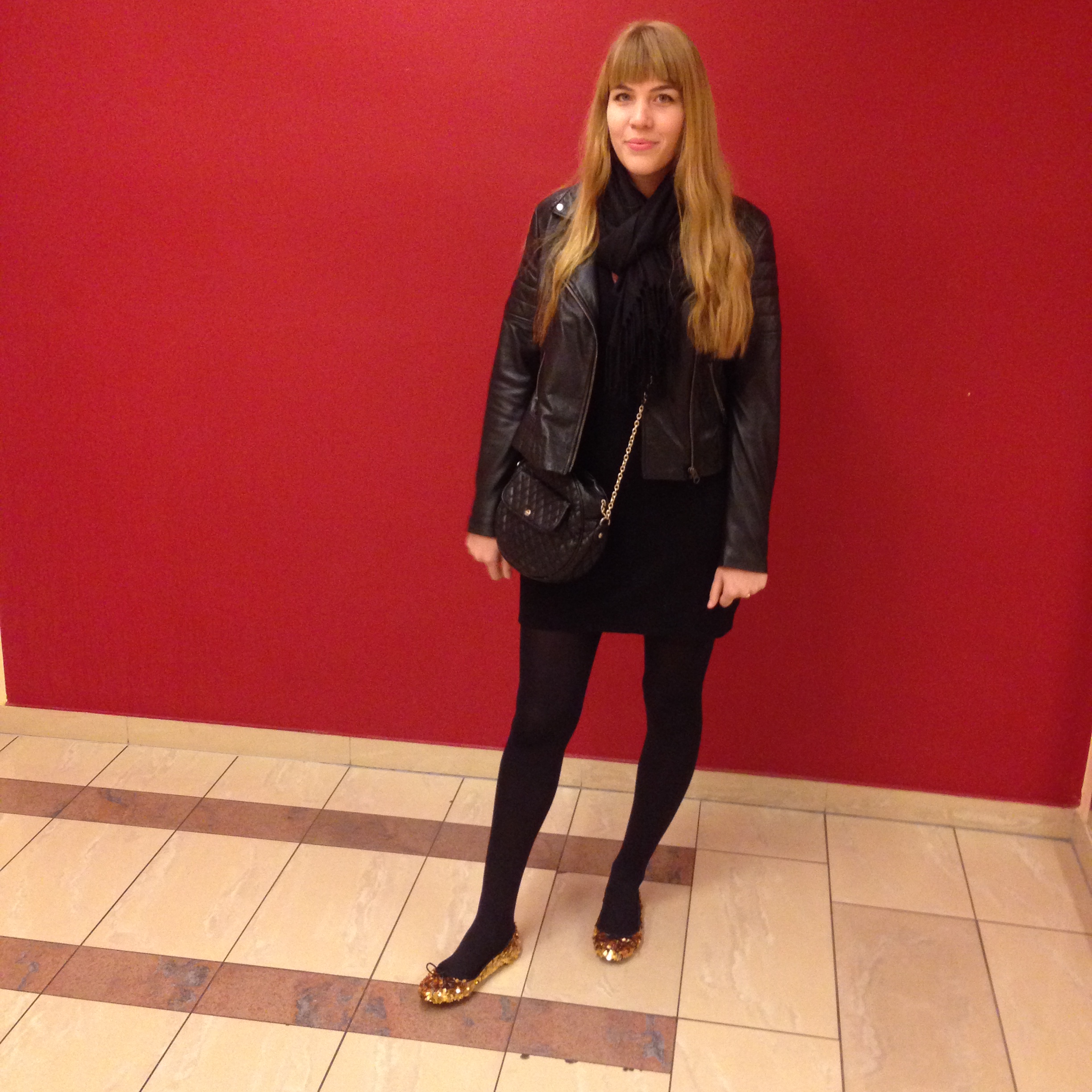 You know when you find something that you absolutely love and you just can’t stand to part from it? Definitely the case with me and this bag – I love it to pieces. It’s an old Mango quilted circle bag with a lovely gold chain and I have been constantly wearing it lately. (I also wore it yesterday with a different outfit, which I’ll post soon.) I do not have any issues with wearing this bag over and over again, but the problem is that it is starting to show it’s age and I will need to buy a new one soon. This outfit, worn last Wednesday, features quite a few of my favorites: my newest leather jacket, an old black knitted dress, my black pashmina scarf and of course, the shoes.