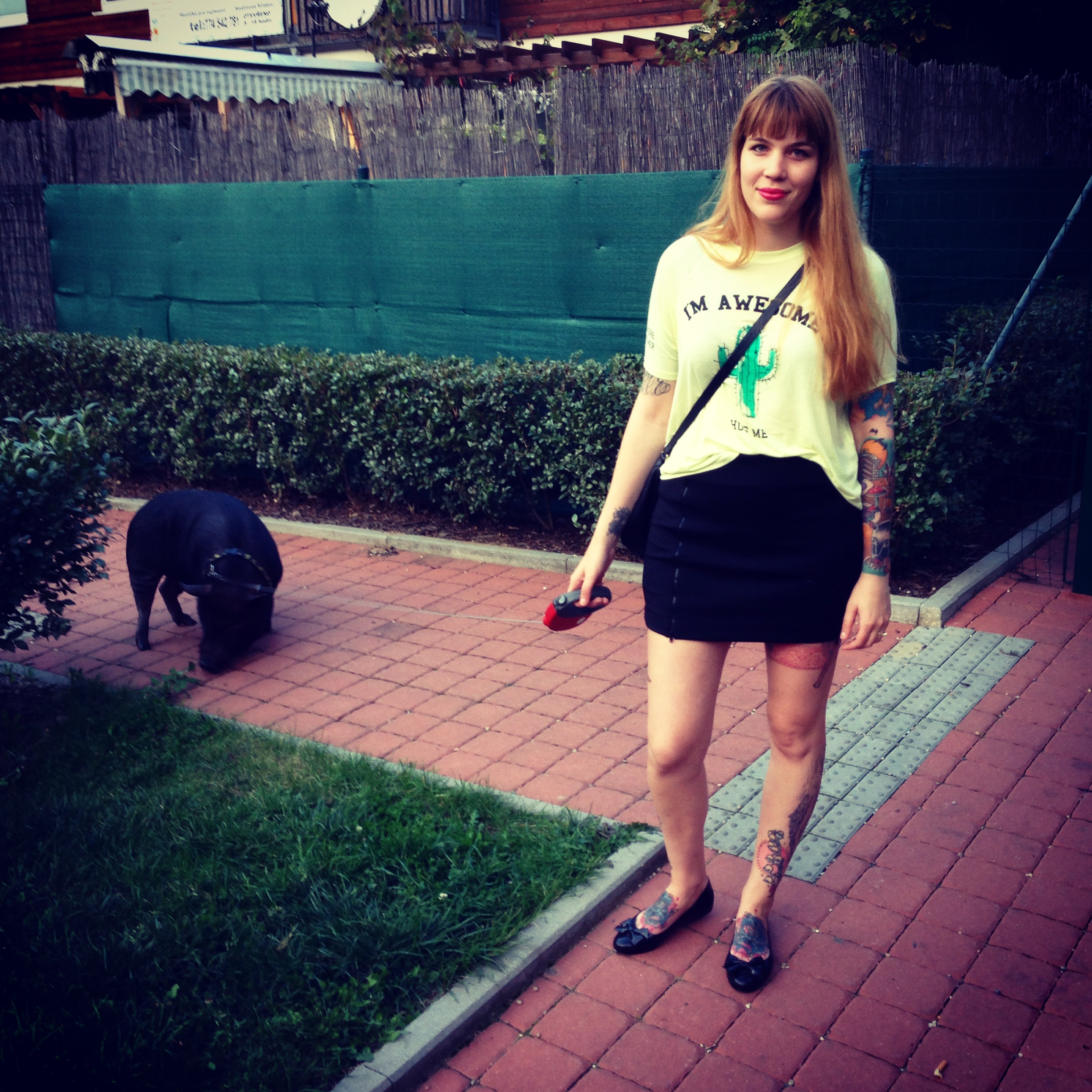 zara tee cactus I'm awesome hug meSecondly, it has a picture of a super cute cactus and has a slogan saying “I’m awesome. Hug me.” But yeah, it was the cactus that won me over. And the fact that the shirt was on sale and was incredibly cheap. I love the sales… I wore this outfit last weekend to walk Mr. Pig and though I had gotten a few other photos, I was having a ‘bitch face’ kind of day. But so that this post isn’t so short, I will add a photo of one of my current favorite perfumes (which I was also wearing at the time of taking these photos):